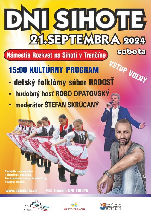 Trenčan a rodák zo Sihote Štefan Skrúcaný privíta svojich hostí. Z Kubrej, čo je bývalá obec a dnes súčasť Trenčína príde Folklórny súbor Kubran. Hosťom a hlavným účinkujúcim bude Lukáš Adamec.